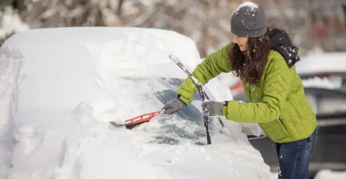 A quick vehicle check can prevent bigger problems on the road. Ensure your brakes, lights, windshield wipers, and defrosters are working properly. Keep your windshield, lights, roof, and mirrors clear of snow and ice since what blows off your vehicle can become a hazard for others.